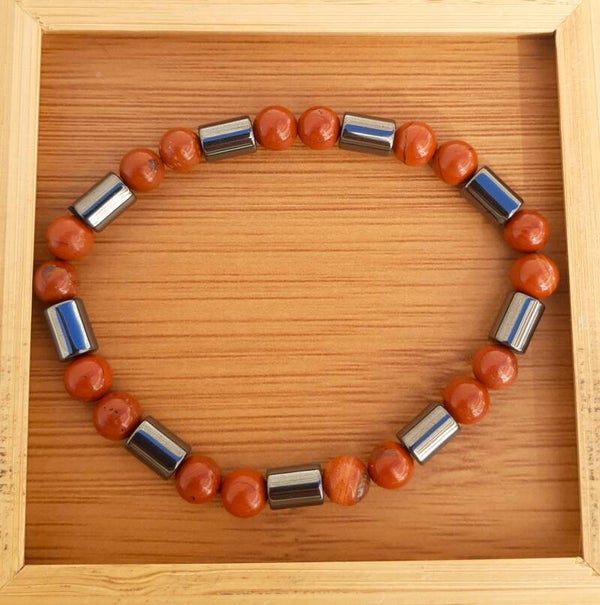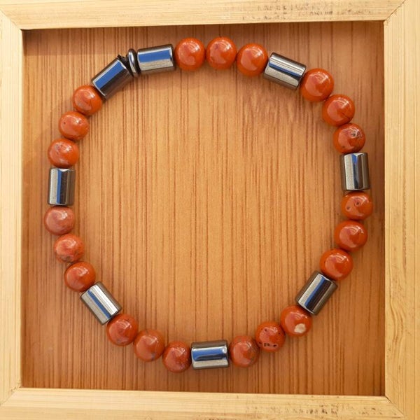 Le jaspe peut être d'origine volcanique ou sédimentaire. Il est essentiellement constitué à plus de 80% de silice. Il appartient au groupe des quartz. En lithothérapie, le jaspe rouge est la pierre de l'énergie et de la vitalité. Il est l'allié parfait pour toute personne souhaitant se sentir plus énergique.